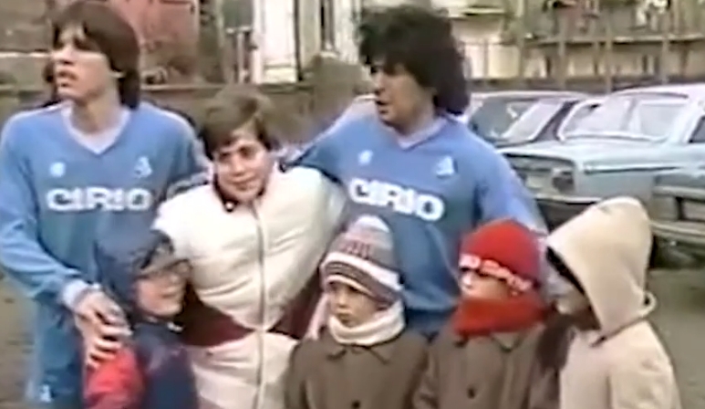 Era il 18 marzo 1985. Campo fangoso, arbitro un vigile urbano, Ferlaino furioso per il via libera alla gara. L’incasso non basta a coprire i costi dell’operazione del bambino. Maradona non esita: stacca un assegno e chiude la raccolta. Quel giorno segna due reti straordinarie, una simile al futuro gol del secolo, l’altra con la mano, annullata.