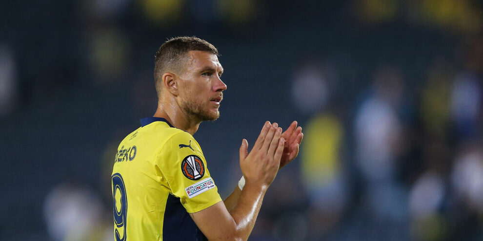ISTANBUL, TURKEY - September 26: Edin Dzeko of Fenerbahce shows appreciation to the fans during the UEFA Europa League 2024/25 League Phase MD1 match between Fenerbahce SK and R. Union Saint-Gilloise at Ulker Stadium on September 26, 2024 in Istanbul, Turkey. (Photo by Ahmad Mora/Getty Images)